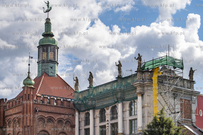 Od ponad dwóch tygodni trwa remont Złotej Bramy. Pierwszy etap inwestycji prowadzonej przez Stowarzyszenie Architektów Polskich Oddział Wybrzeże polega na zabezpieczeniu górnego trasu przed zgubnym wpływem wody deszczowej na budowlę. Żółty zsyp do zrzucania gruzu i rusztowania zmontowane przy ścianie szczytowej zabytku od strony ul. Podgarbary znamionują toczące się na najwyższej kondygnacji ciężkie prace odkrywkowe. Zgodnie z deklaracją złożoną przez właściciela budynku rozbiórka warstw wykończeniowych tarasu powinna zakończyć przed rozpoczęciem Jarmarku św. Dominika. Miasto współfinansuje inwestycję. Dotacja dla SARP Oddział Wybrzeże w wysokości 430 tys. zł została przyznana uchwałą Rady Miasta Gdańska z przeznaczeniem na remont tarasu oraz prace konserwatorskie sklepień nad 1 kondygnacją i korony murów obwodowych. – Złota Brama, będąca jednym z najbardziej rozpoznawalnych symboli Gdańska, od lat zachwyca turystów i mieszkańców swoim niepowtarzalnym urokiem. Jej znaczenie historyczne i kulturowe sprawia, że jest nieodłączną częścią dziedzictwa miasta. Remont obiektu jest niezbędny, aby zapewnić mu odpowiednią konserwację i długotrwałe zachowanie dla przyszłych pokoleń – mówi prezydent Gdańska Aleksandra Dulkiewicz. SARP złożyło także wniosek do Ministerstwa Kultury i Dziedzictwa Narodowego na dofinansowanie prac dotyczących fundamentów. Niestety wnioskowane środki nie zostały przyznane. Stowarzyszenie odwołało się od decyzji ministra. 15.07.2023 / fot. Paweł Marcinko / KFP