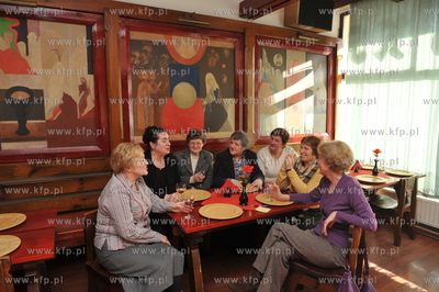 Restauracja Newska w Gdansku Wrzeszczu na. al. Grunwaldzkiej. Przy stoliku towarzyskie spotkanie z okazji Dnia Kobiet mieszkanek Wrzeszcza, kolezanek z gdanskiego II Liceum Ogolnoksztalcacego rowniez z