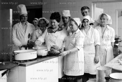 Kuchnistrz restauracji Europejska w Leningradzie Olga Iwanowna Tichonowa podczas przyrzadzania posilkow w restauracji Newska w Gdansku Wrzeszczu.