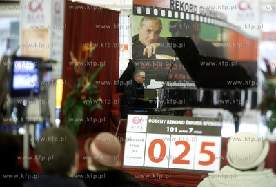 Gdansk. Centrum handlowe Alfa Centrum. Niezwykla probe ustanowienia nowego swiatowego rekordu w najdluzszej grze na fortepianie podejmuje znany podroznik Romuald Koperski. Obecny rekord w tej kategorii wpisany do Ksiegi Guinnessa nalezy do Wegra Charlesa Brunnera i wynosi 101 godz.7 min. Rekord ten zostal ustanowiony w stolicy wyspiarskiego panstwa Trinidad and Tobago w Hotelu Crowne Plaza Hotel of Spain, w 2008r.