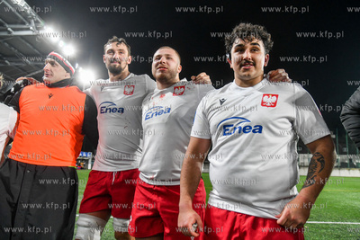Mecz Polska - Litwa na Narodowym Stadionie Rugby n/z Jakub Małecki, Jakub Wojtkowicz , Wiktor Wilczuk, 16.11.2024 / fot. Maciej Czarniak / KFP / Trojmiasto.pl