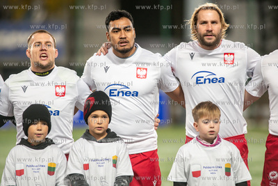 Mecz Polska - Litwa na Narodowym Stadionie Rugby n/z Daniel Gdula, Vaha Halaifonua, Aleksander Nowicki 16.11.2024 / fot. Maciej Czarniak / KFP / Trojmiasto.pl