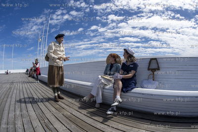 Molo w Sopocie. Zamiana dech, czyli Zakopane i Sopot otwierają sezon letni - Magdalena Czarzyńska-Jachim, prezydentka Sopotu i Łukasz Filipowicz, burmistrz Zakopanego, wymienili deski snowboardową na kitesurfingową. Nz. rekonstruktorzy historyczni 13.05.2024 fot. Paweł Marcinko / KFP