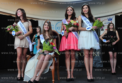Sopot. Muszla koncertowa na Placu Kuracyjnym. Ogolnopolskie wybory Miss Lata 2013. Wybory zorganizowane przez Kapielisko Morskie Sopot i Impresario Gdansk. Nz. od lewej: Paulina Kocot - Miss Publicznosci, Natalia Kazmierczak- Miss Lata 2013, Zuzanna Brdekiewicz - II Wicemiss Lata i Magdalena Czaplicka - I Wicemiss Lata. 07.07.2013 fot. Jerzy Bartkowski / KFP