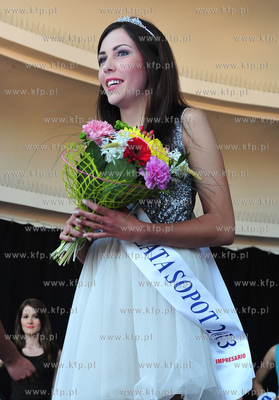 Sopot. Muszla koncertowa na Placu Kuracyjnym. Ogolnopolskie wybory Miss Lata 2013. Wybory zorganizowane przez Kapielisko Morskie Sopot i Impresario Gdansk. Nz. Natalia Kazmierczak wybrana Miss Lata 2013. 07.07.2013 fot. Jerzy Bartkowski / KFP