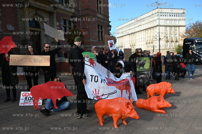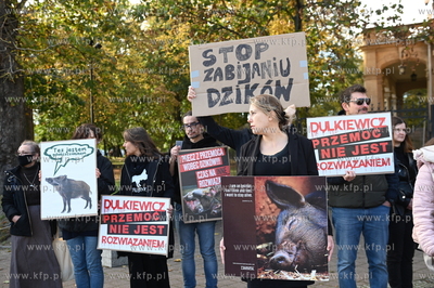 Urzędnicy gdańskiego magistratu informują, że działania związane z redukcją dzików w mieście prowadzone są w porozumieniu z Powiatowym Lekarzem Weterynarii. W opinii samorządu nie ma skuteczniejszej metody walki z zagrożeniem niż odstrzał zwierząt. Przeciwnicy tej metody postanowili zaprotestować na ulicy, gdyż ich petycje kierowane od dłuższego czasu do władz miasta pozostają bez echa. 19.10.2024 / fot. Andrzej J. Gojke / KFP