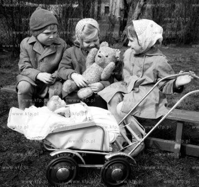 Dziewczynki bawia na terenie przedszkola. 0002978 1964 Fot. Zbigniew Kosycarz / KFP ZAKAZ PUBLIKACJI ZDJECIA W INTERNECIE