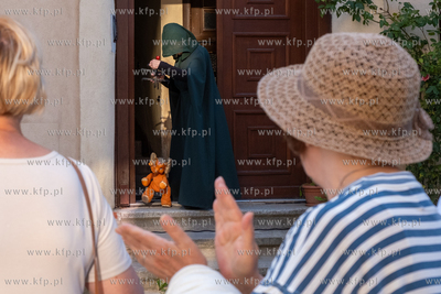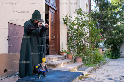 Gdańsk, ul. Batorego 5 Odsłonięcie tablicy upamiętniającej Michaela Meschke. Nz. Oryginalne lalki Teatru Łątki animuje Grażyna Totwen-Kilarska. 15.07.2024 / fot. Anna Rezulak / KFP