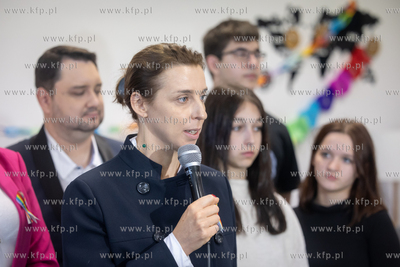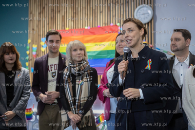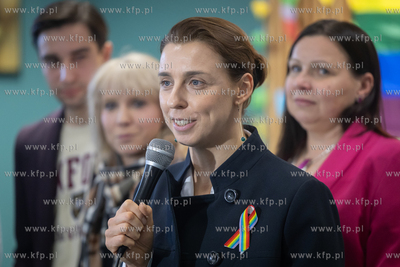 Zespół Szkół Gastronomiczno-Hotelarskich w Gdańsku. 8. edycja akcji edukacyjnej ,,Tęczowy piątek", której celem jest wsparcie młodzieży LGBTQIA+ w codziennym funkcjonowaniu. Nz. wiceprezydentka Gdańska Monika Chabior.