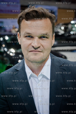 Gdansk. Ergo Arena. IV Trojmiejskie Targi Motoryzacyjne. Nz prowadzacy, dziennikarz motoryzacyjny i kierowca wyscigowy Adam Kornacki 23.09.2012 fot. Mateusz Ochocki / KFP