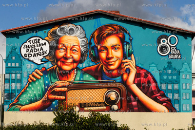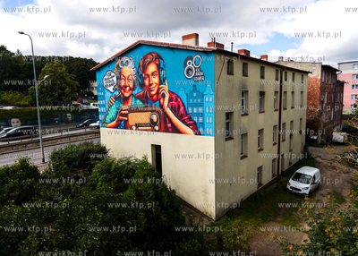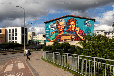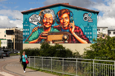 Intensywne kolory odzwierciedlają żywe Radio Gdańsk, a uśmiechające się do widzów postacie seniorki i młodego mężczyzny symbolizują wielopokoleniowy charakter rozgłośni. Mural na 80. urodziny radiowej rodziny ozdobił ścianę budynku przy ul. Partyzantów 85 w Wrzeszczu, u zbiegu ul. Chrzanowskiego i al. Żołnierzy Wyklętych. Dzieło stworzył znany trójmiejski artysta Piotr „Tuse” Jaworski wraz z zespołem Tuse Studio. – Ten obraz w naturalny sposób celebruje 80. rocznicę powstania Radia Gdańsk, ale jednocześnie przypomina, że jesteśmy, że działamy dla naszych odbiorców i że chcemy z nimi współpracować – mówi zarządzający rozgłośnią mecenas Krzysztof Lodziński. Mural wykonany przy jednej z najbardziej ruchliwych arterii miasta będzie cieszyć oczy przechodniów i kierowców co najmniej przez najbliższy rok. 24.07.2025 / fot. Daniel Słoboda / KFP