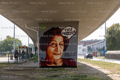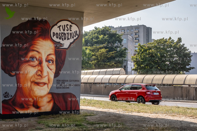 Gdańsk, ul. Elbląska. Sędzia żużlowa Irena Nadolna-Szatyłowska upamiętniona muralem autorstwa Piotra Jaworskiego Tuse. 06.09.2024 / fot. Anna Rezulak / KFP