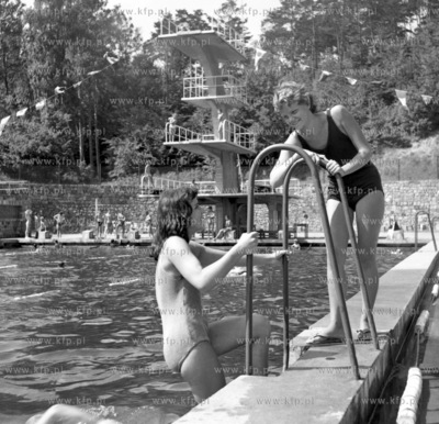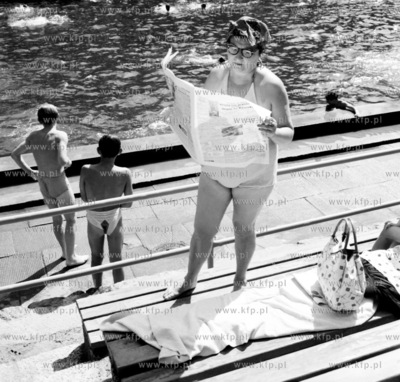 Lektura prasy na basenie w Gdyni Redlowie. 6.08.1960 0004595 Fot. Zbigniew Kosycarz / KFP ZAKAZ PUBLIKACJI ZDJECIA W INTERNECIE