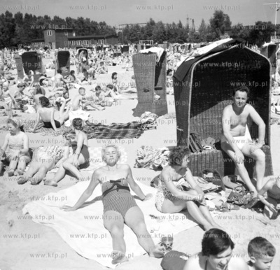 Wiklinowe kosze na plazy w Sopocie. 1962 1_sopot_50-60_z.kosycarz_p5 Fot. Zbigniew Kosycarz / KFP.PL ZAKAZ PUBLIKACJI ZDJECIA W INTERNECIE