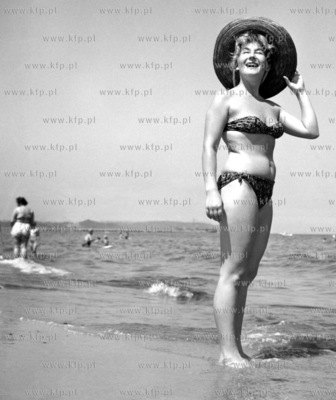 Kobieta na plazy w Gdyni. 1962 (003049) Fot. Zbigniew Kosycarz / KFP ZAKAZ PUBLIKACJI ZDJECIA W INTERNECIE ZAKAZ PUBLIKACJI ZDJECIA W INTERNECIE