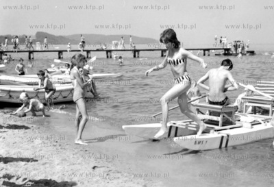 Rower wodny na plazy w Sopocie. 1962 (003053) Fot. Zbigniew Kosycarz / KFP ZAKAZ PUBLIKACJI ZDJECIA W INTERNECIE ZAKAZ PUBLIKACJI ZDJECIA W INTERNECIE
