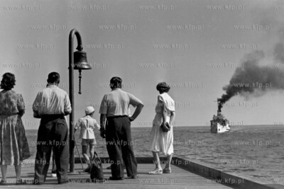 Sopockie molo i statek wycieczkowy bialej floty Zeglugi Gdanskiej Zofia. 1958 (?) Fot. Zbigniew Kosycarz / KFP ZAKAZ PUBLIKACJI ZDJECIA W INTERNECIE ZAKAZ PUBLIKACJI ZDJECIA W INTERNECIE