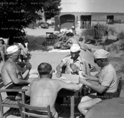 Wczasowicze graja w karty w poblizu sopockiej plazy. 1961 SOP_II_sopot_wczasy_p1 Fot. Zbigniew Kosycarz / KFP.PL ZAKAZ PUBLIKACJI ZDJECIA W INTERNECIE