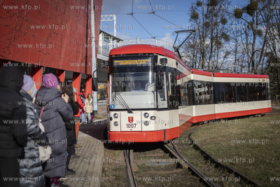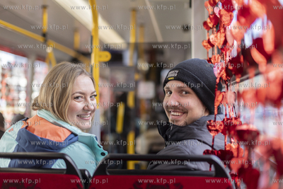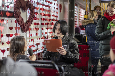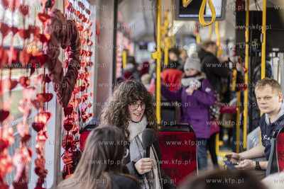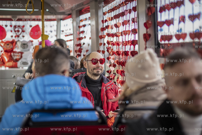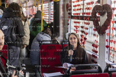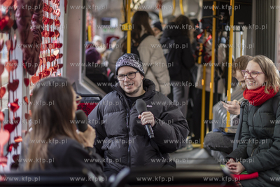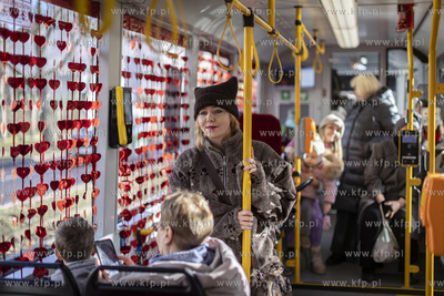Specjalnie udekorowany walentynkowy tramwaj Bombardier NGT6 na trasie Strzyża PKM - Węzeł Groddecka.14.02.2025