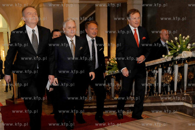 Teatr Wielki w Warszawie. Gala 20-lecia Konfederacji Pracodawcow Polskich podczas ktorej najbardziej zasluzonych dla KPP ugonorowano statuetkami WEKTOR 20-LECIA. WEKTORY i SUPER WEKTOR - to doroczne nagrody przyznawane od 2002 roku przez Konfederacje Pracodawcow Polskich. To prestizowe wyroznienie nie tylko w swiecie gospodarki, ale takze polityki, kultury i mediow. Otrzymuja je najlepsi. Nz. Laureaci Wektorow 20-lecia (od lewej) Ryszard Krauze, Wieslaw Rozlucki (GPW), Jan Kulczyk, Leszek Czarnecki