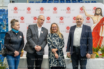 Hala 100-lecia Sopotu. Wielkanocne śniadanie dla potrzebujących. Nz. Prezydentka Sopotu Magdalena Czarzyńska - Jachim. arcybiskup Tadeusz Wojda. 19.04.2025 / fot. Anna Rezulak / KFP