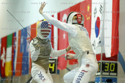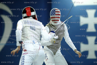 Gdansk. Gdańska Szkoła Floretu. 13. edycjai turnieju Dwór Artusa, zaliczanego do rozgrywek o Pucharu Świata we Florecie Kobiet. Pojedynek o trzecie miejsce turnieju drużynowego USA - Rosja. 05.02.2017 fot. Krzysztof Mystkowski / KFP