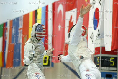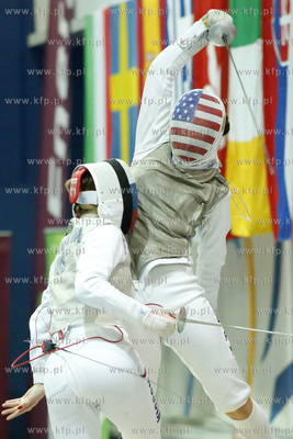 Gdansk. Gdańska Szkoła Floretu. 13. edycjai turnieju Dwór Artusa, zaliczanego do rozgrywek o Pucharu Świata we Florecie Kobiet. Pojedynek o trzecie miejsce turnieju drużynowego USA - Rosja. Nz. 05.02.2017 fot. Krzysztof Mystkowski / KFP
