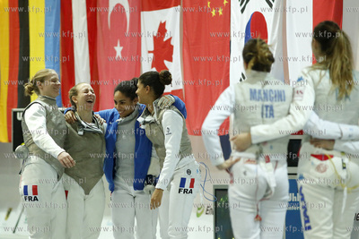 Gdansk. Gdańska Szkoła Floretu. 13. edycjai turnieju Dwór Artusa, zaliczanego do rozgrywek o Pucharu Świata we Florecie Kobiet. Finał turnieju drużynowego Włochy - Francja. 05.02.2017 fot. Krzysztof Mystkowski / KFP