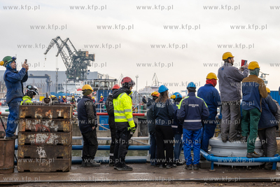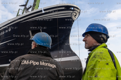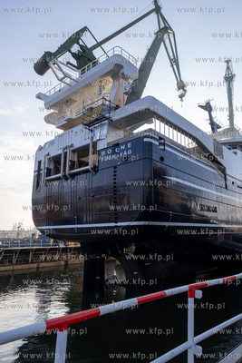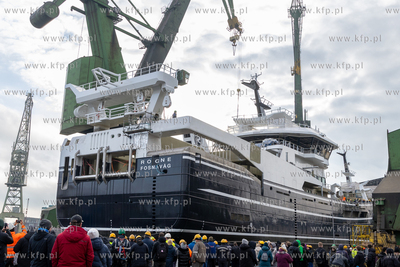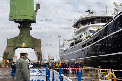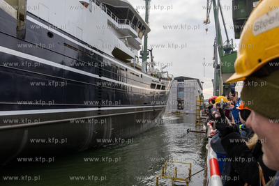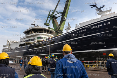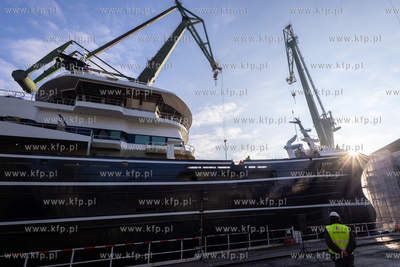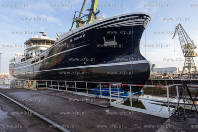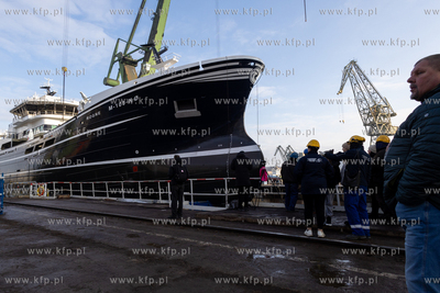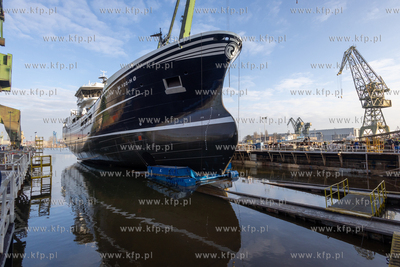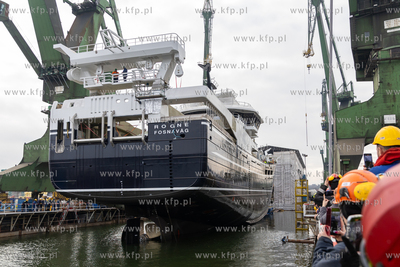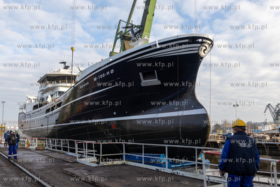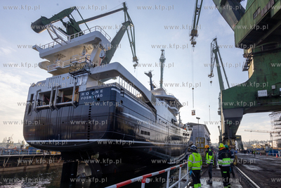 Gdańsk, Stocznia Karstensen Shipyard Poland Sp. z o. Wodowanie kadłubu trawlera. 24.01.2025 / fot. Anna Rezulak / KFP