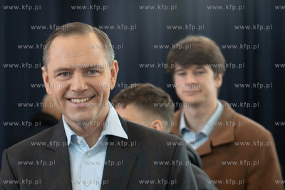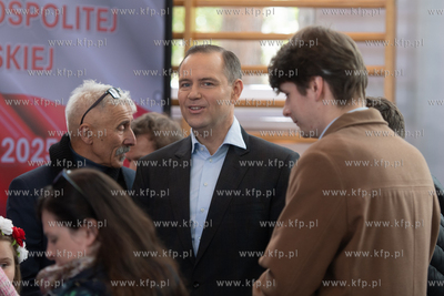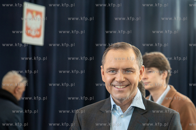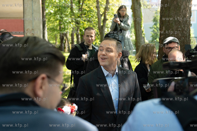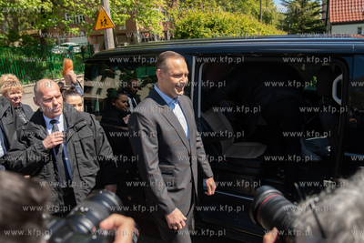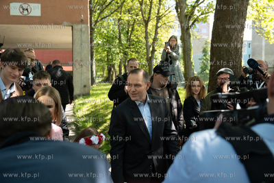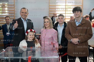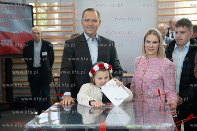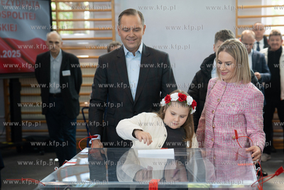 Karol Nawrocki kandydat na prezydenta RP oddaje głos razem z rodziną w komisji obwodowej w Szkole Podstawowej nr 58 w Gdańsku. 18.05.2025 fot. Paweł Marcinko / KFP