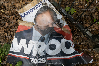 Gdańsk. Wybory Prezydenckie 2025. Nz. Zniszczony plakat wyborczy. 02.06.2025 fot. Anna Rezulak/KFP