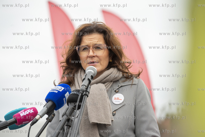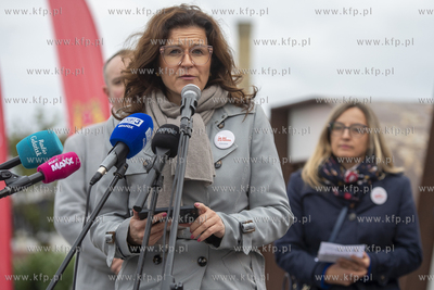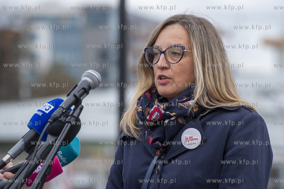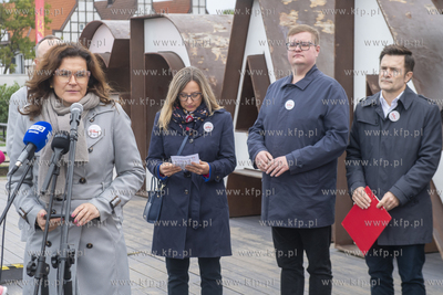 Ołowianka przy napisie Gdańsk. Konferencja poświęcona wyborom do Rad Dzielnic. Nz. Aleksandra Dulkiewicz, prezydent Gdańska. 07.10.2024 fot. Paweł Marcinko / KFP