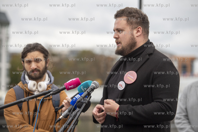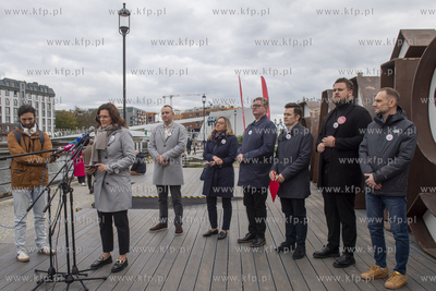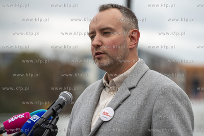 Ołowianka przy napisie Gdańsk. Konferencja poświęcona wyborom do Rad Dzielnic. Nz. Karol Ważny - radny M. Gdanska 07.10.2024 fot. Paweł Marcinko / KFP