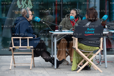 Forum Gdańsk. Otwarcie wystawy z okazji 80. urodzin Radia Gdańsk. Nz. Joanna Matuszewska, Magda Szpiner i Hania Kosycarz. Paweł Marcinko / KFP09.05.2025 fot. Paweł Marcinko / KFP