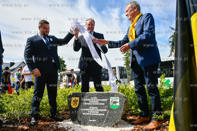Kościerzyna. XXV Światowy Zjazd Kaszubów. Odsłonięcie tablicy upamiętniające wcześniejsze zjazdy Kaszubów w Kościerzynie 06.07.2024 fot. Paweł Marcinko / KFP