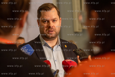 UMG. Konferencja prasowa wiceprezydent Gdańska Moniki Chabior w sprawie zmiany zasad sprzedaży alkoholu na terenie Gdańska. Nz. radny Maximilian Kieturakis. 17.01.2025 fot. Paweł Marcinko / KFP