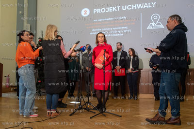 UMG. Konferencja prasowa wiceprezydent Gdańska Moniki Chabior w sprawie zmiany zasad sprzedaży alkoholu na terenie Gdańska. 17.01.2025 fot. Paweł Marcinko / KFP