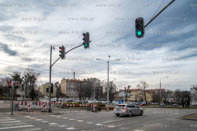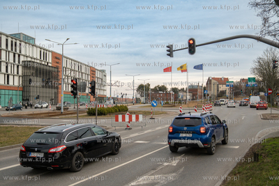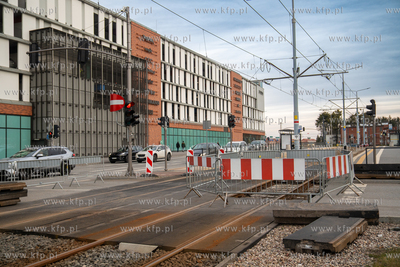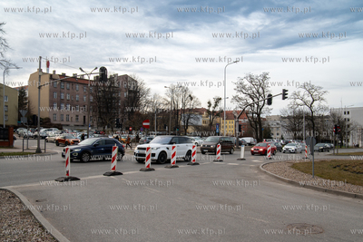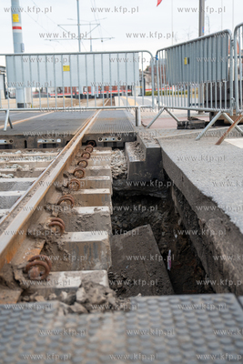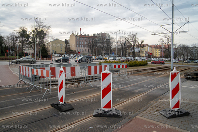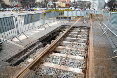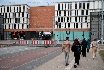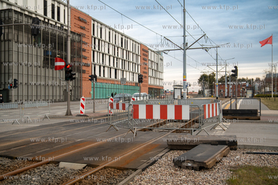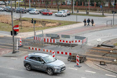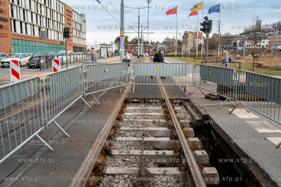 Pod jezdnią i torowiskiem przy skrzyżowaniu ulic 3 Maja i Rogaczewskiego w Gdańsku zapadła się ziemia. Do awarii doszło na wysokości wjazdu do Forum Gdańsk. 05.03.2025 fot. Paweł Marcinko / KFP