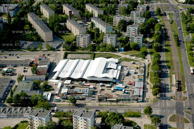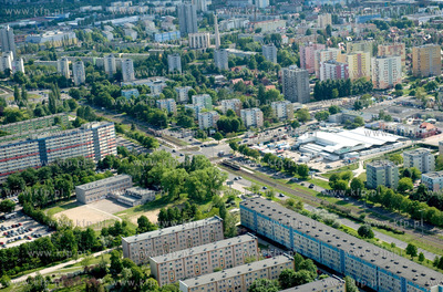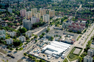 Gdansk Przymorze z lotu ptaka. Targowisko miejskie Zielony Rynek na rogu ul. Czerwony Dwor i Chlopskiej. Za nim ul. Krzywoustego. 30.05.2011 Fot. Maciej Kosycarz / KFP