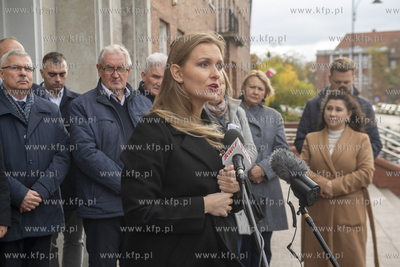Urząd Marszałkowski w Gdańsku. Konferencja prasowa "Komitetu Zielony Ład - STOP" na której przedstawiono projekt uchwały kierowanej do sejmiku województwa dt. zielonego ładu. Nz. Natalia Nitek - Płażyńska. 30.10.2024 fot. Paweł Marcinko / KFP