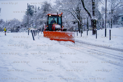 Zima w Gdyni Orłowie. Pług podczas odśnieania drogi. 11.01.2025 fot. Paweł Marcinko / KFP