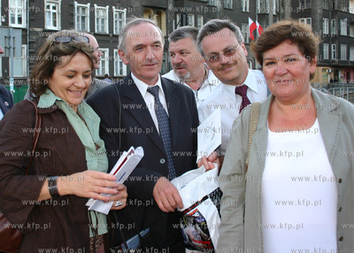 Gdansk. Obchody 25. rocznicy Solodarnosci. Przed koncertem "Ku drodze wolnosci". Nz (pierwsza z lewej) Nina Rasch -dziennikarka (po sierpniu 80. roku wyemigrowala do Niemiec, mieszka na stale w Hamburgu)